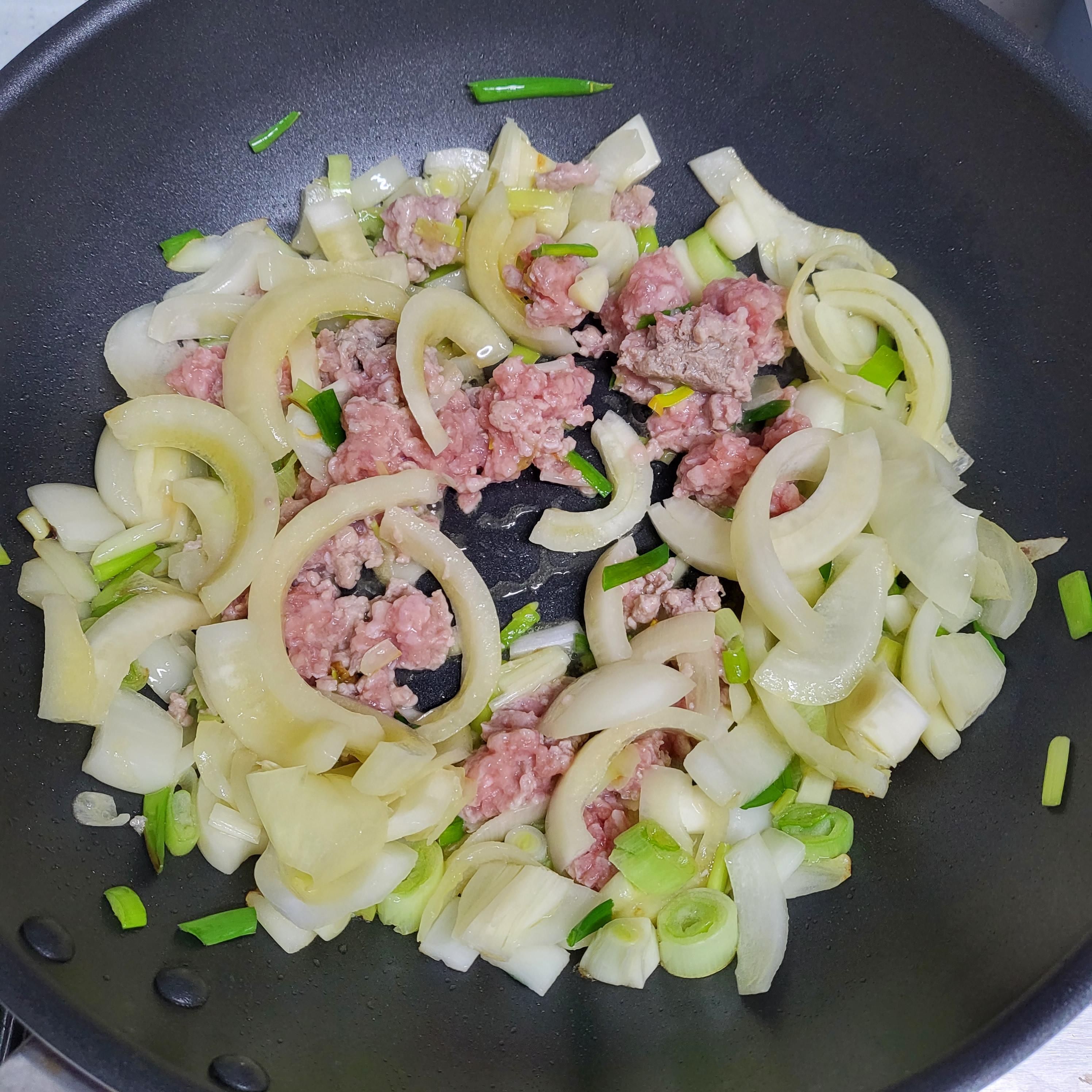 1. 양파와 대파는 썰어서 식용유에 볶아주기