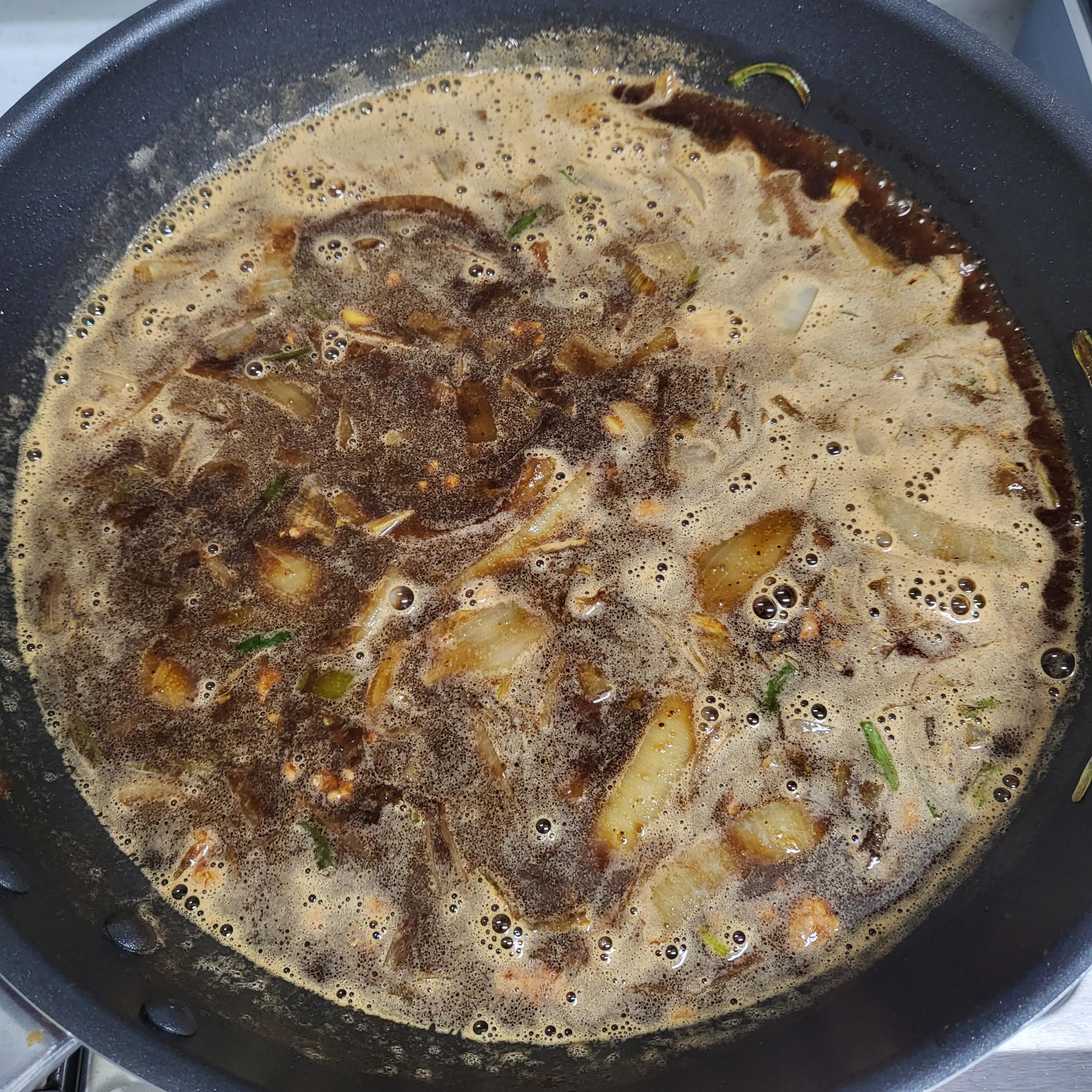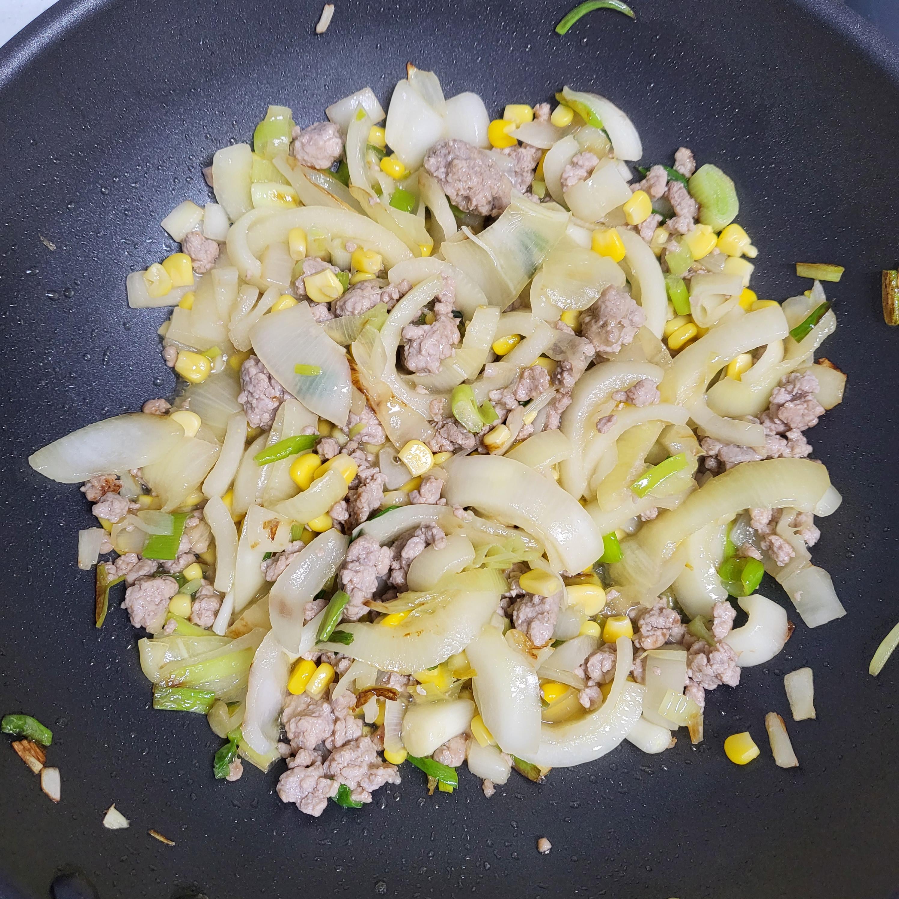 양파가 오래돼서 양파쫑이 자라났길래 그냥 같이 썰어서 넣어줬어요.